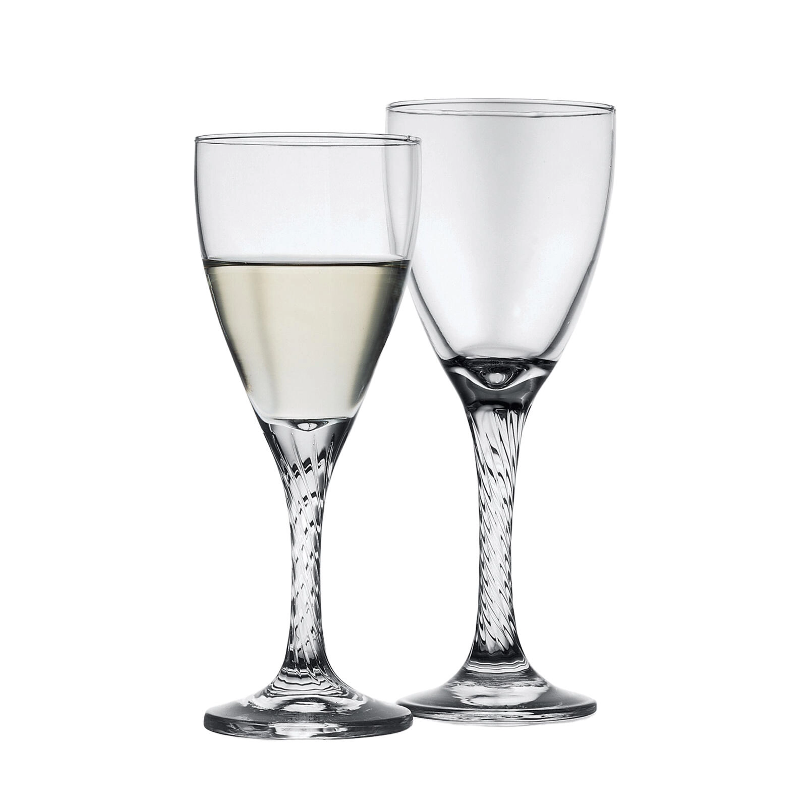 Opgrader serveringen af hvidvin med sættet PASABAHCE TWIST. Det klare glas lader vinens farve og glans træde frem, den elegante skålform understøtter den rette frigivelse af aromaer, og den formede stilk giver glassene et sofistikeret look.