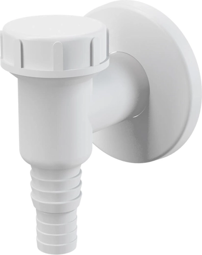 Praktisk udendørs sifon til tilslutning af vaskemaskine eller opvaskemaskine i hvid farve. Tilbyder tørklap mod lugt, nem rengøring via serviceåbning og kompatibilitet med slanger 19/23 mm samt afløbsrør 32 mm.
