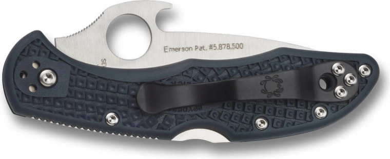 Kompakt og pålidelig foldekniv SPYDERCO DELICA 4 med Emerson Opener for ekstremt hurtig åbning, når den trækkes op af lommen. Den tilbyder en klinge i VG-10 med satinfinish, fuld fladslibning og sikker backlock-lås. Det lette og holdbare blågrå FRN-skæfte med tekstur giver et sikkert greb selv i vådt føre.
