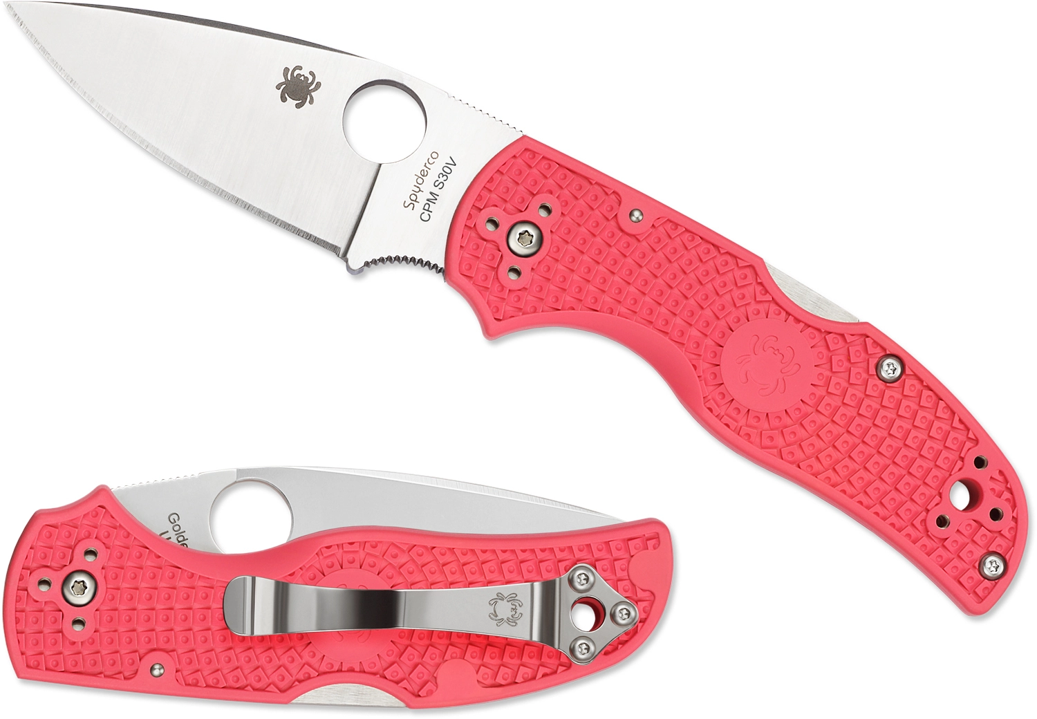 Spyderco Native 5 i lyserød er en ikonisk lommekniv til hverdagsbrug, der kombinerer førsteklasses materialer med gennemtænkt ergonomi. Klingen i pulverstål CPM S30V med satinfinish og fuld fladslibning giver fremragende skæreegenskaber, kantbestandighed og nem vedligeholdelse. Tommelfingerhullet SpyderHole muliggør glidende enhåndsåbning, mens Back Lock holder klingen sikkert i arbejdsposition.