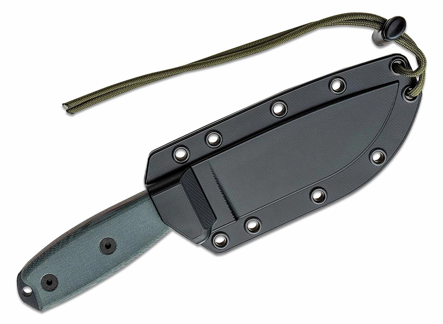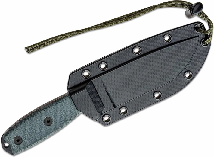 Skæftet i Micarta i grå ligger godt i hånden, giver et sikkert greb selv under krævende forhold og har et hul i enden til en snor. Med i pakken følger et sort plastetui, der kan fastgøres på udrustning, så du altid har kniven sikkert og bekvemt ved hånden.