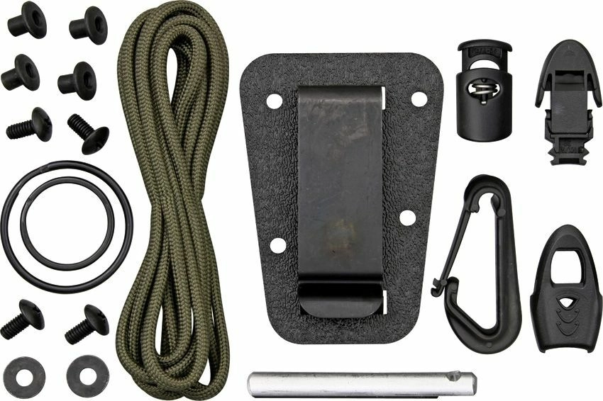 Greb med flere huller muliggør tilpasning – fra paracord-omvikling til ophæng på snor eller ring. Med kniven følger en solid plastskede til sikker og diskret bæring om halsen eller på udstyret. Sættet fuldendes af et praktisk overlevelsessæt, så du er forberedt på uventede situationer.