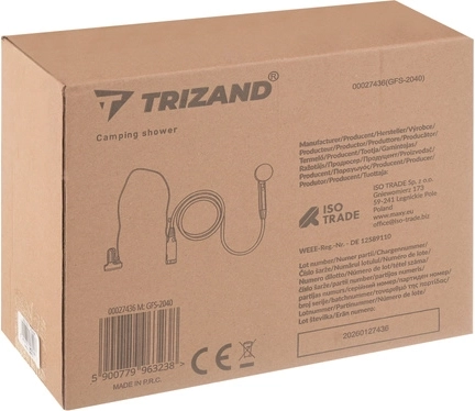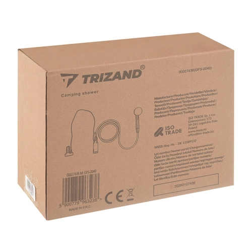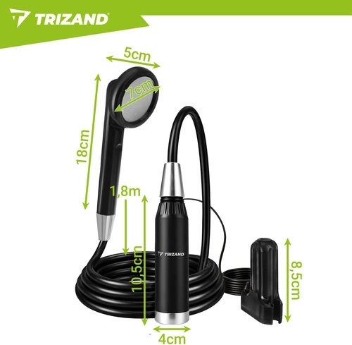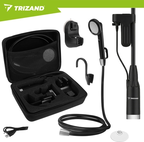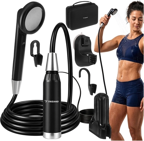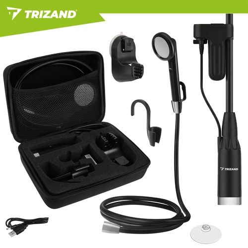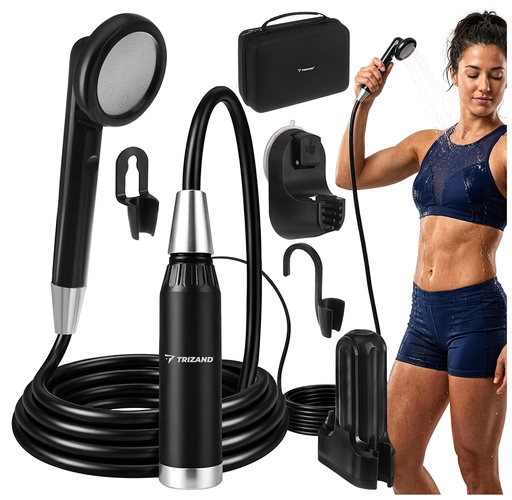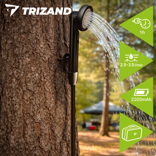 Den bærbare TRIZAND-bruser er en praktisk løsning til alle, der ønsker komfortabel vask uden for hjemmet. Den kraftige nedsænkbare pumpe giver en stabil vandstrøm, mens det genopladelige batteri muliggør uafhængig brug uden netstrøm. Takket være det kompakte sæt med etuiet kan du nemt tage den med overalt.