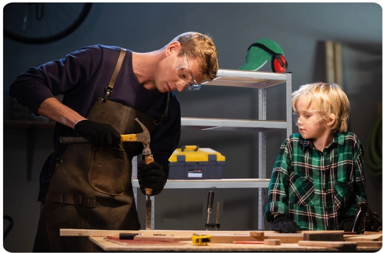 Op til 175 kg pr. hylde og mulighed for at dele op i to mindre reoler eller bruge som arbejdsbord. Ideel til garage, værksted eller lager.