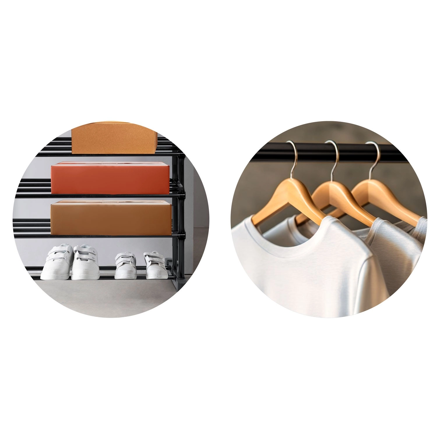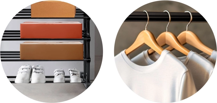 Hylder i flere niveauer giver plads til fodtøj, opbevaringsbokse og accessories, så alt er lige ved hånden og pænt organiseret.