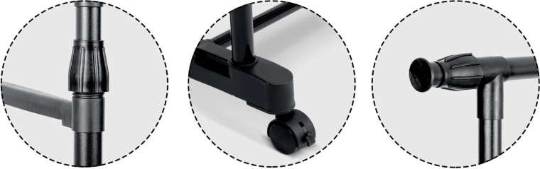 Takket være justerbar højde og bredde tilpasser du nemt stativet til aktuelle behov – fra børnetøj til lange frakker. Drejelige hjul med bremse sikrer mobilitet og stabil fastlåsning på stedet. Let men robust stålkonstruktion giver stabilitet i daglig brug.
