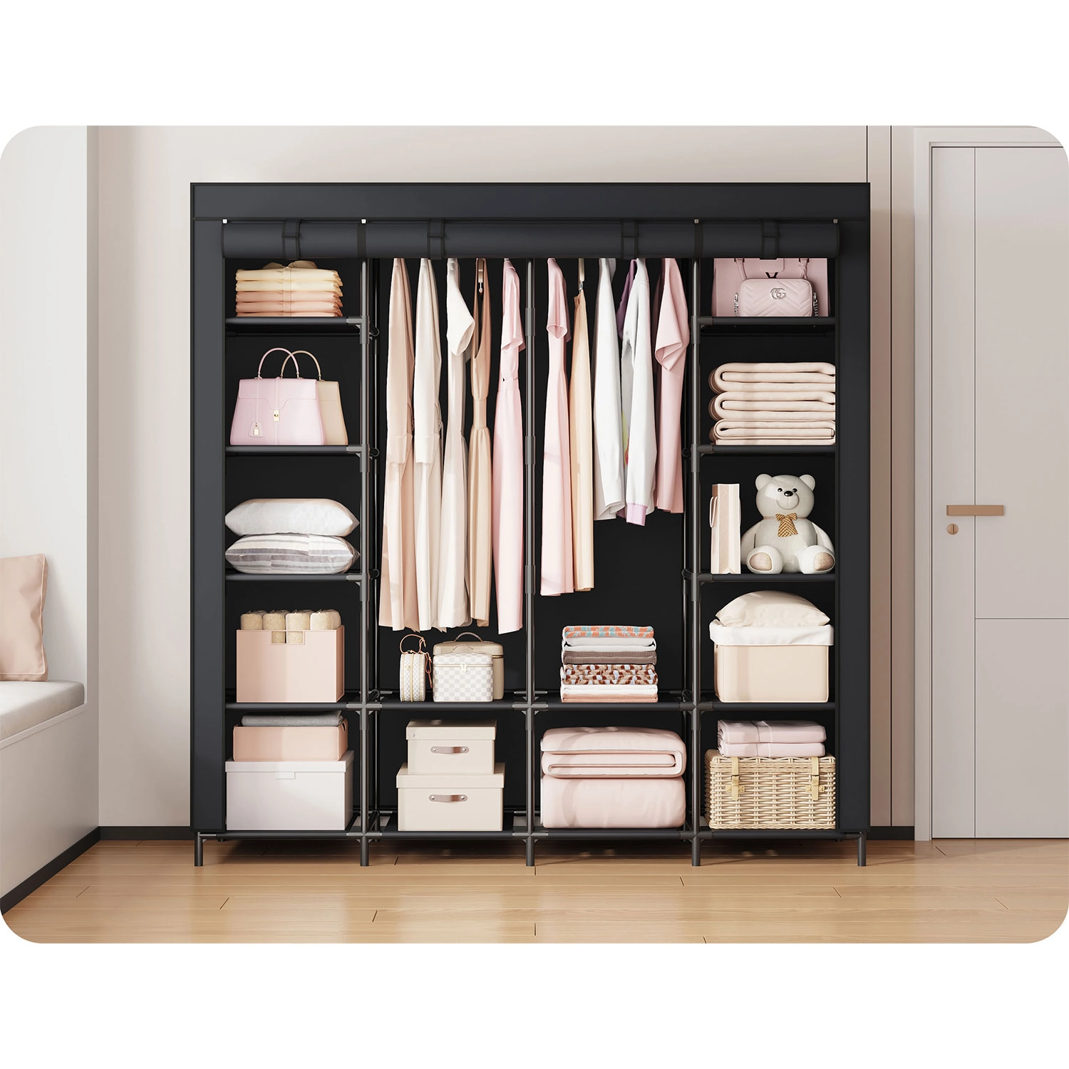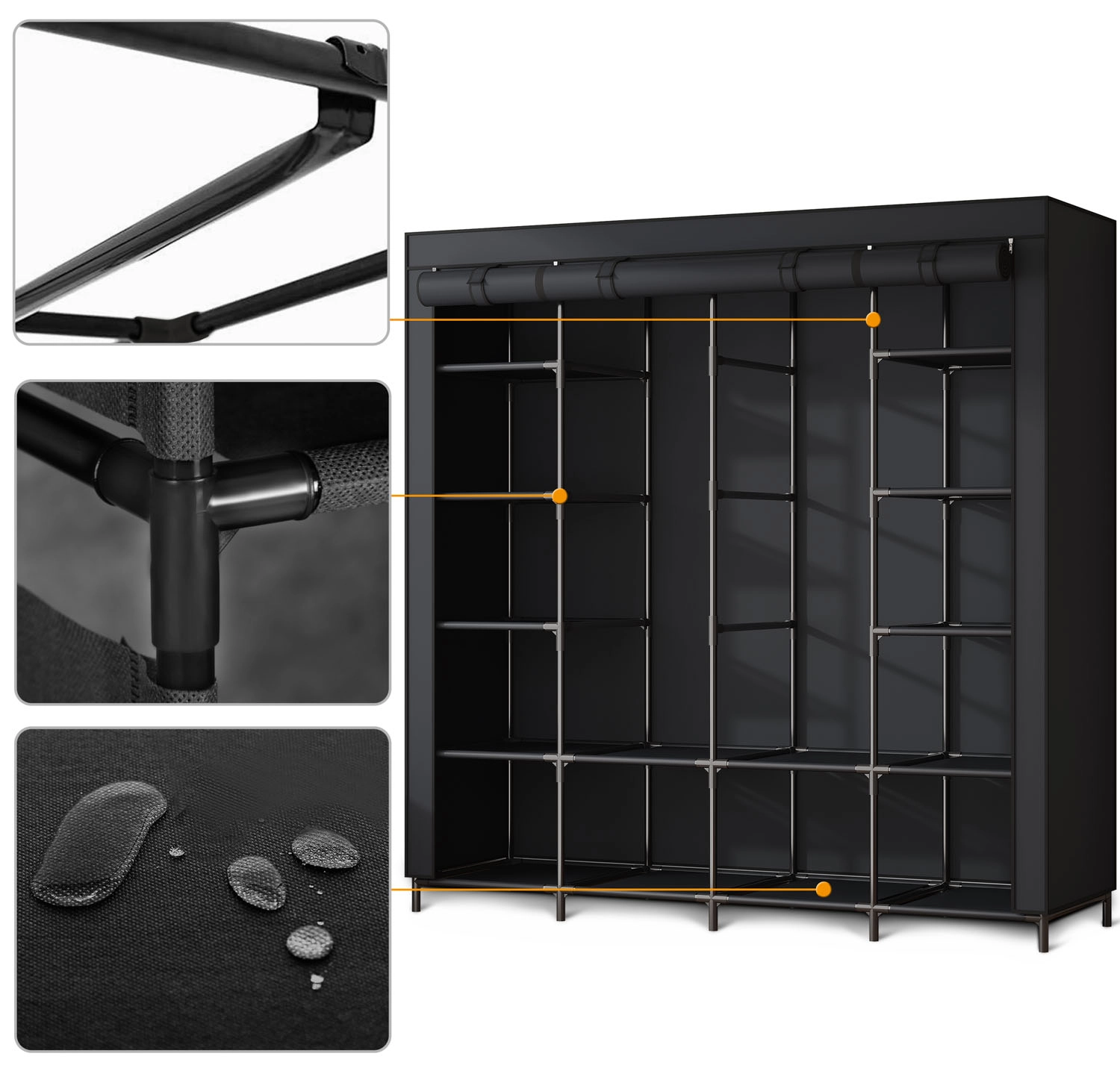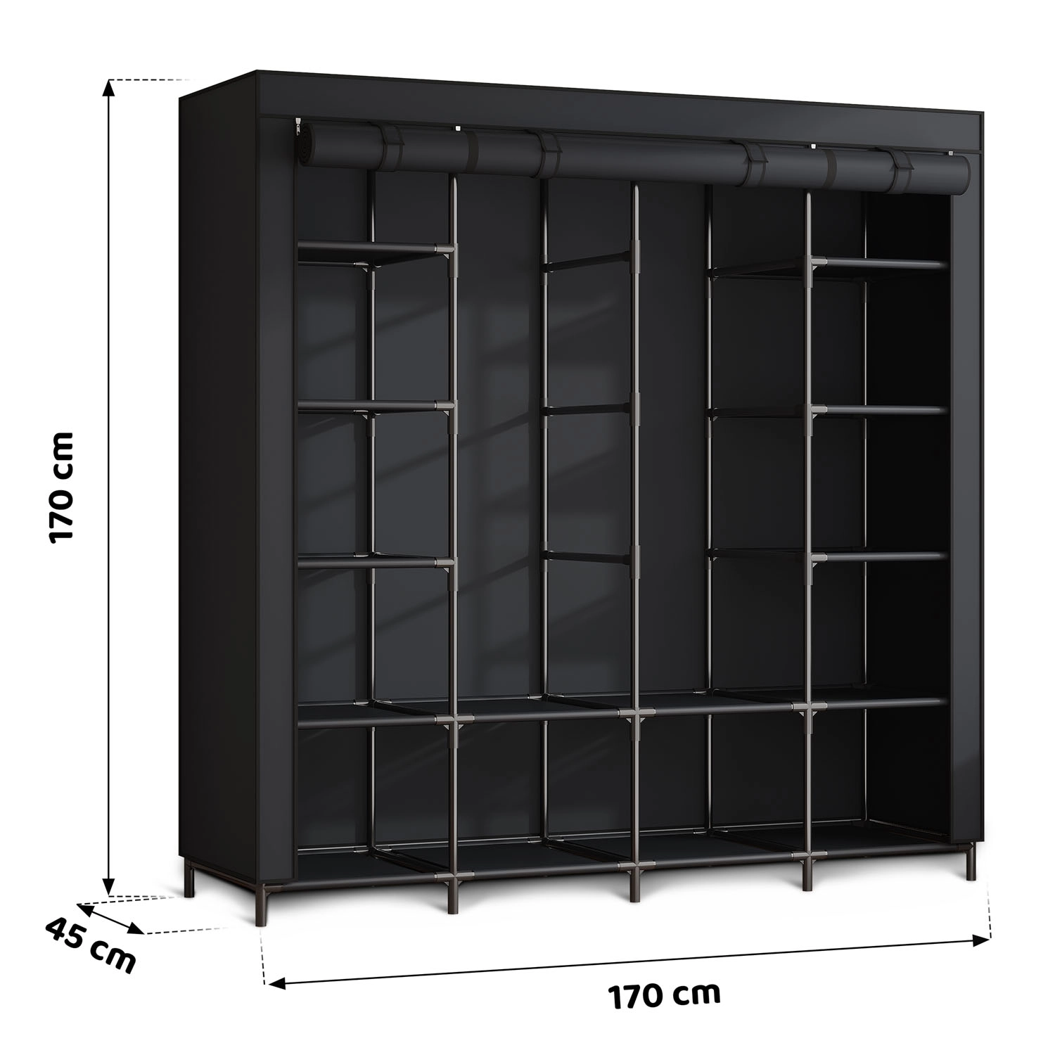 Takket være frontpaneler med lynlås og mulighed for at rulle dem op får du hurtig adgang til hverdagstøjet. Monteringen er hurtig og intuitiv, helt uden værktøj. Skabet er perfekt til sæsontøj, kasser, sengetøj og tilbehør.