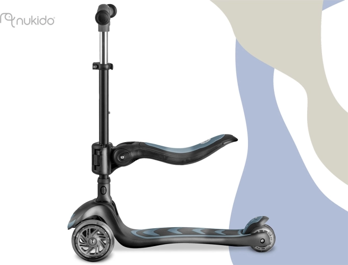 Det trehjulede børneløbehjul Nukido Flippo tilbyder stabil balance-styring, højdejusterbart T‑styr og et aftageligt sæde for en tryg start. Takket være den brede, skridsikre fodplade, fodbremse og LED-hjul er kørslen både sjov og sikker. Den robuste konstruktion med maksimal belastning på 50 kg opfylder europæiske sikkerhedsstandarder EN71 og er ideel til daglig kørsel både inde og ude.