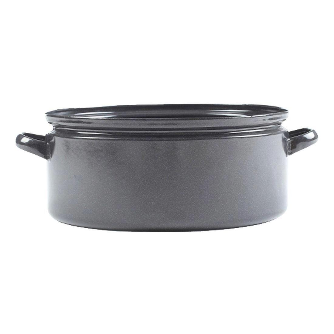 Stort køkkengrej af stål i GASTRO-udførelse med emaljeret overflade er skabt til daglig belastning i storkøkkener, skolekantiner og derhjemme. Den glatte, ikke-porøse overflade er ridsefast, hygiejnisk og absorberer hverken lugt eller smag. Den jævne varmefordeling gør madlavningen effektiv og energibesparende.