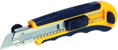 FESTA afbryderkniv 18 mm er et pålideligt valg til værksted, byggeplads og husholdning. Takket være den robuste konstruktion, metalskinnen og den sikre klingelåsning klarer den præcise snit i pap, folie, tæpper og andre materialer. Reserveblade er inkluderet, så du kan arbejde uden unødvendige afbrydelser.
