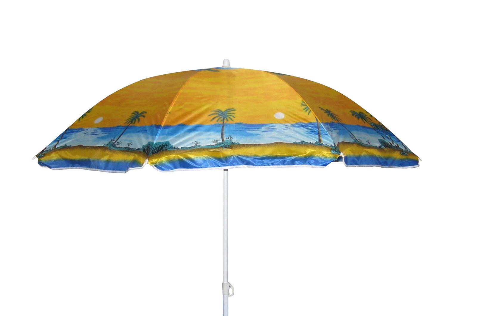 Nyd sommeren i behagelig skygge. Denne alsidige parasol med en diameter på 180 cm reducerer effektivt direkte sollys og øger komforten under afslapning på stranden, altanen eller i haven. Den robuste metalkonstruktion og det slidstærke polyesterstof sikrer lang levetid og nem vedligeholdelse.