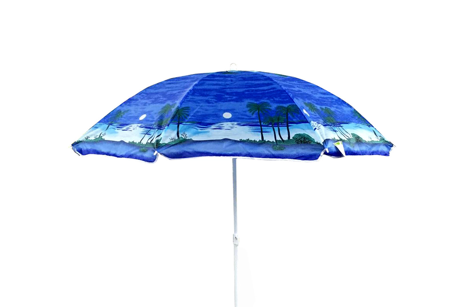 Praktisk strand- og havesolparasol med en diameter på 180 cm, der giver behagelig skygge og beskyttelse mod solen. Takket være den lette metalkonstruktion og det holdbare polyesterbetræk er den nem at transportere, stabil og kræver minimal vedligeholdelse. Den fås i et attraktivt mix af farver og mønstre, så du kan vælge præcis den stil, du ønsker. Stor diameter på 180 cm, metalstang på 2,2 cm og nem højdejustering gør parasollen til en ideel ledsager på stranden, terrassen og i haven.