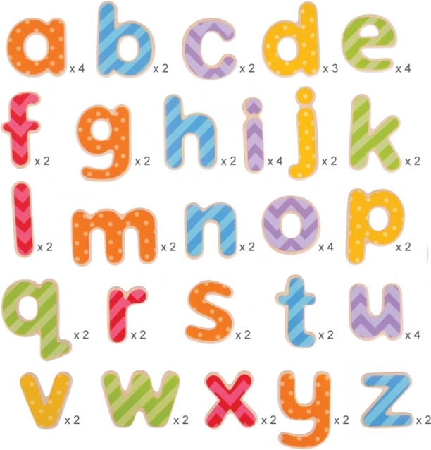 Disse farverige magnetiske bogstaver er lavet af kvalitets træ og udstyret med magneter, hvilket gør dem ideelle til brug på tavler. De hjælper børn med at genkende bogstaver, udvikle stavefærdigheder og skabe deres egne ord og sætninger.