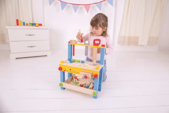 Dette farverige træarbejdsbord fra BIGJIGS TOYS er en fantastisk introduktion til værktøjernes verden. Med realistiske detaljer og sikre træværktøjer øver børn praktiske færdigheder og lærer grundlæggende principper for arbejde med værktøj – på en legende og sikker måde.