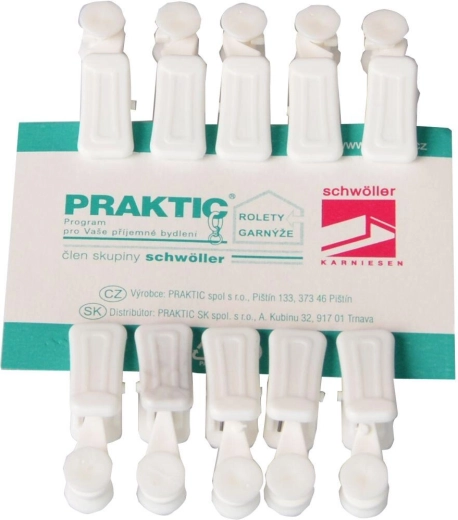 Praktiske klemmer til U-skinne i pakke med 10 stk. gør det nemt at hænge gardiner og forhæng op. De er lette, holdbare og i en universel hvid farve for diskret brug. Ideelle til hurtig montering og jævn trækning af stof. Nemt at fastgøre stoffet, universel hvid, let og robust udførelse.
