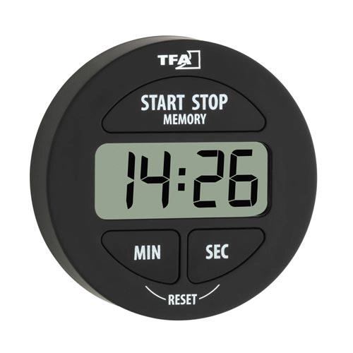 Dette kompakte digitale ur er en ideel hjælper i køkkenet, på kontoret og i værkstedet. Takket være den overskuelige betjening og stopurfunktion måler du nemt både korte intervaller og længere tider op til 99 minutter og 59 sekunder. Den lette og holdbare konstruktion med overflade af gummimateriale sikrer behagelig brug.