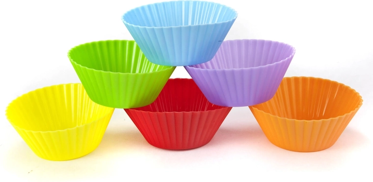 Praktiske silikoneformede muffinforme CULINARIA i størrelsen 7,5 × 3 cm i en pakke med 6 stk til nem og gentagen bagning af muffins og cupcakes. Takket være kvalitetssilikone er de varmeresistente op til 230 °C, non-stick og det færdige bagværk kan nemt tages ud. Det farverige mix (gul, orange, lyserød, lilla, blå, grøn) giver bagningen et legende udtryk, og opvaskemaskinevenlig pleje sparer tid.