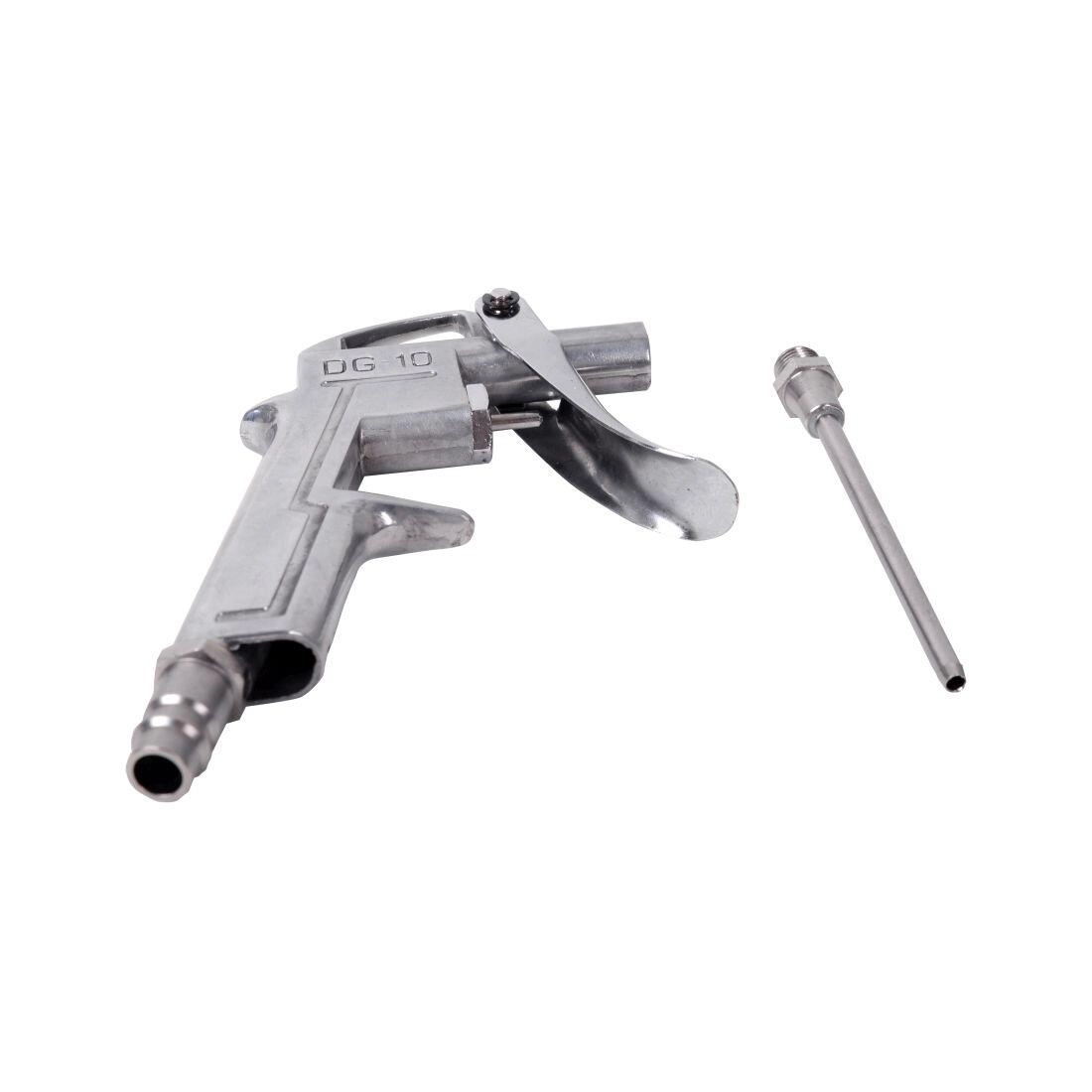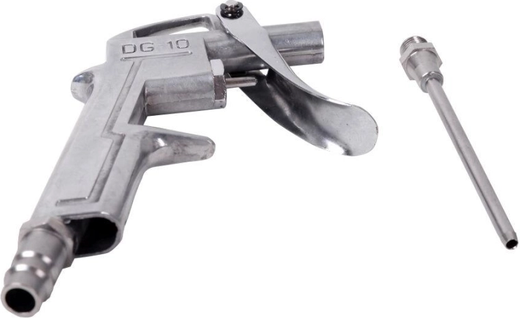 Blæsepistol med lang dyse er et pålideligt værktøj til præcis rengøring og tørring af overflader med trykluft. Takket være den forlængede dyse når den nemt ind i smalle og svært tilgængelige områder, hvor almindelige værktøjer ikke rækker.