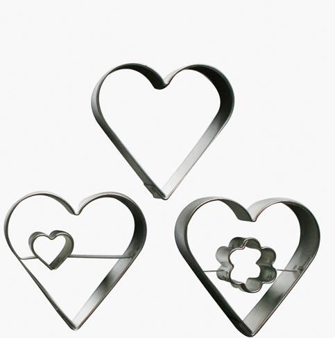 Oplev magien ved hjemmebag med et sæt hjerteformede udstikkere i rustfrit stål. Fra linse-småkager til smørkager – hjerteformene giver dit bagværk et elegant og romantisk udtryk. Takket være den solide konstruktion i rustfrit stål er udstikkerne holdbare, hygiejniske og bevarer formen selv ved hyppig brug.