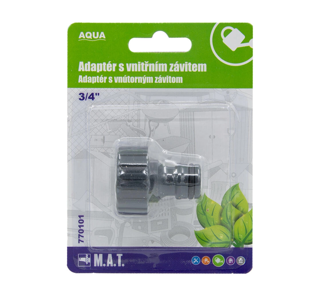Universaladapter med indvendigt gevind 3/4 til nem og hurtig tilslutning af haveslange. Den robuste udførelse fra AQUA sikrer pålidelig tætning og problemfri tilkobling til vandkilder og vandingsudstyr.
