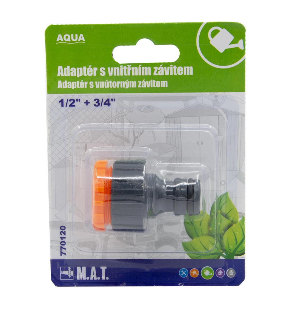 Adapteren med indvendigt gevind fra AQUA er en praktisk løsning til at forbinde slanger med vandhaner eller vandinstallationer. Takket være de to almindelige gevindstørrelser 1/2" og 3/4" dækker den de fleste hjemme- og haveanvendelser og gør installation af vandingssystemer lettere.