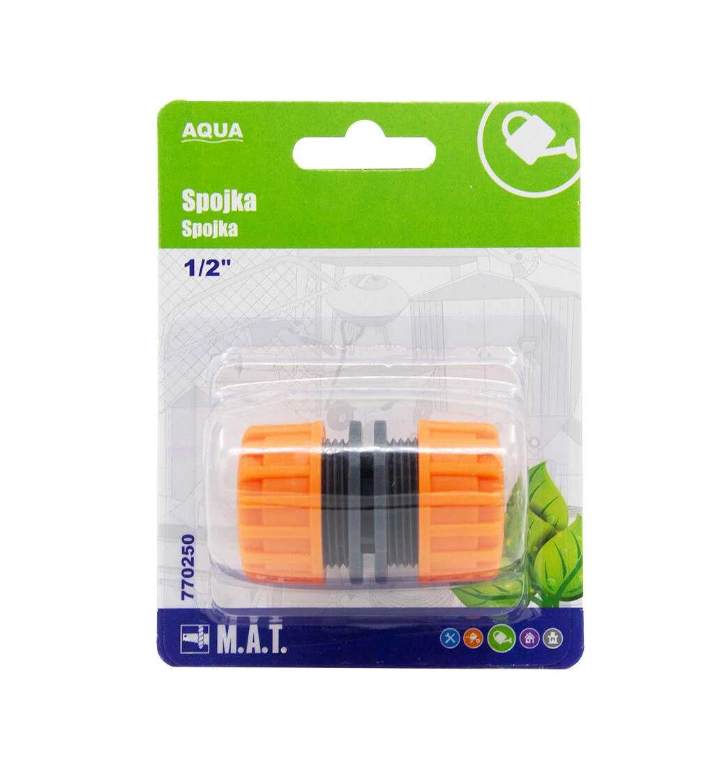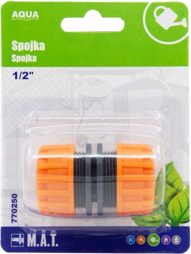 Praktisk 1/2-kobling til havevandslanger AQUA, der sikrer hurtig og pålidelig sammenkobling af slanger eller tilbehør. Takket være den standardiserede 1/2-gevind er den kompatibel med almindelige havesystemer og gør den daglige vanding lettere.
