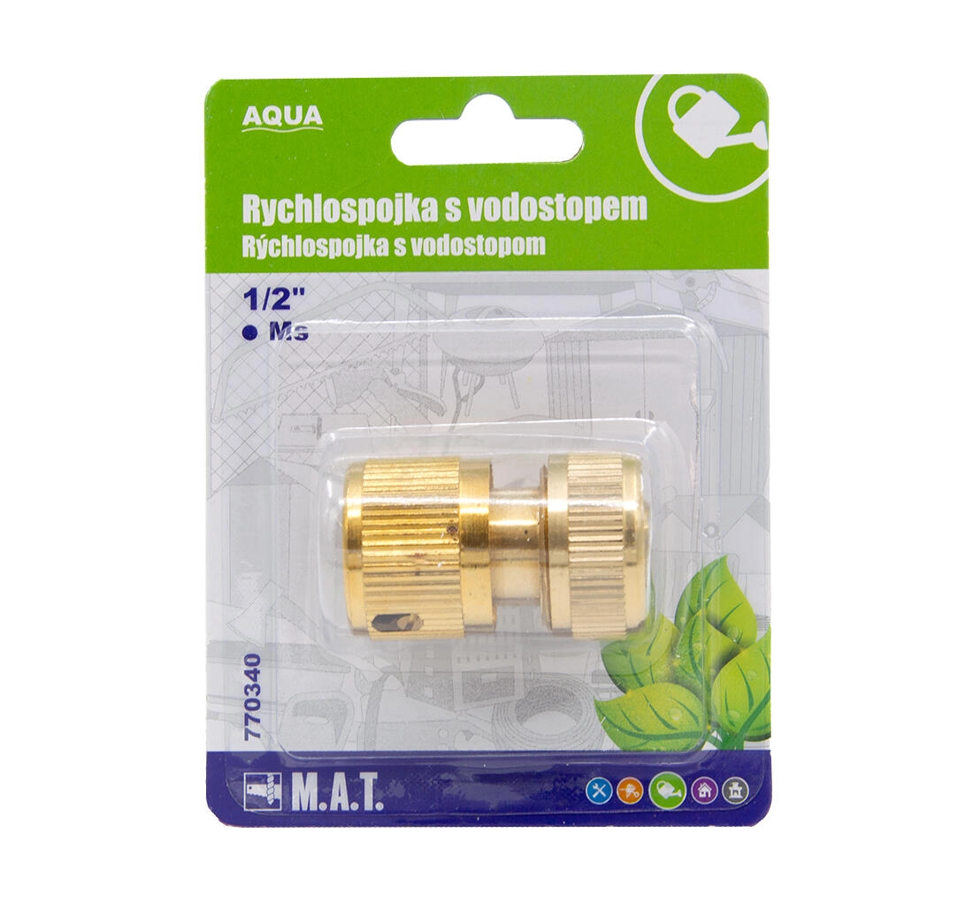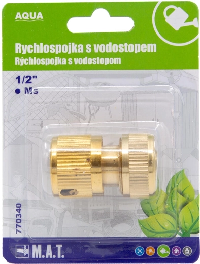 Hurtigkobling 1/2 med vandstop i messing AQUA