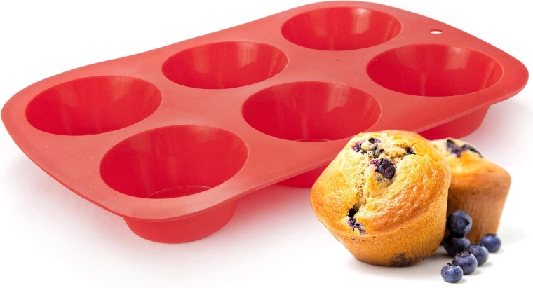 Med denne kvalitets silikoneform til muffins fra CULINARIA bager du 6 jævne portioner uden fastbrænding og uden tidskrævende udsmøring. Silikonen sikrer fremragende bageegenskaber, nem udtagning og lang levetid, samtidig med at den ikke holder på lugte eller smage fra tidligere retter.