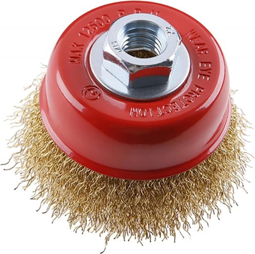 Leder du efter en pålidelig børste til vinkelslibere med universelt M14-gevind? FESTA kopbørste 75 mm med bølget, messingbelagt tråd 0,3 mm er et fremragende valg til rengøring og forberedelse af overflader. Velegnet til stål, støbejern og andre metaller, grovere såvel som finere opgaver samt forbehandling før maling.