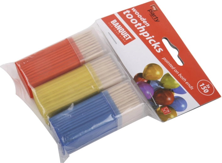 Hold dit bord elegant og praktisk. Sættet tilbyder 3 pakker á 150 stk. runde trætandstikker, som er dobbeltslebne for nem anretning af snacks samt almindelig mundhygiejne efter måltider. Med følger en kvadratisk plastboks med praktisk dispenser for ren og bekvem udtagning.