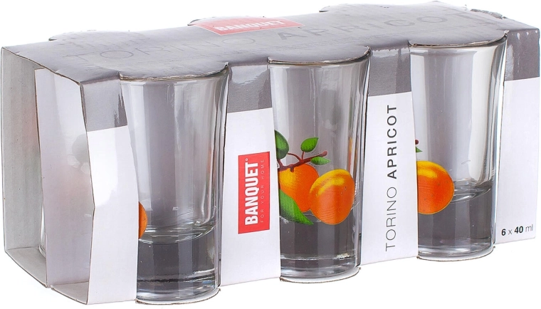 Pift din bar op med elegante snapseglas med abrikosmotiv. Takket være volumen på 40 ml er de perfekte til brændevin, likører og smagning af destillater. Kvalitetsklart glas fremhæver drikkens farve, og den traditionelle form ligger godt i hånden.