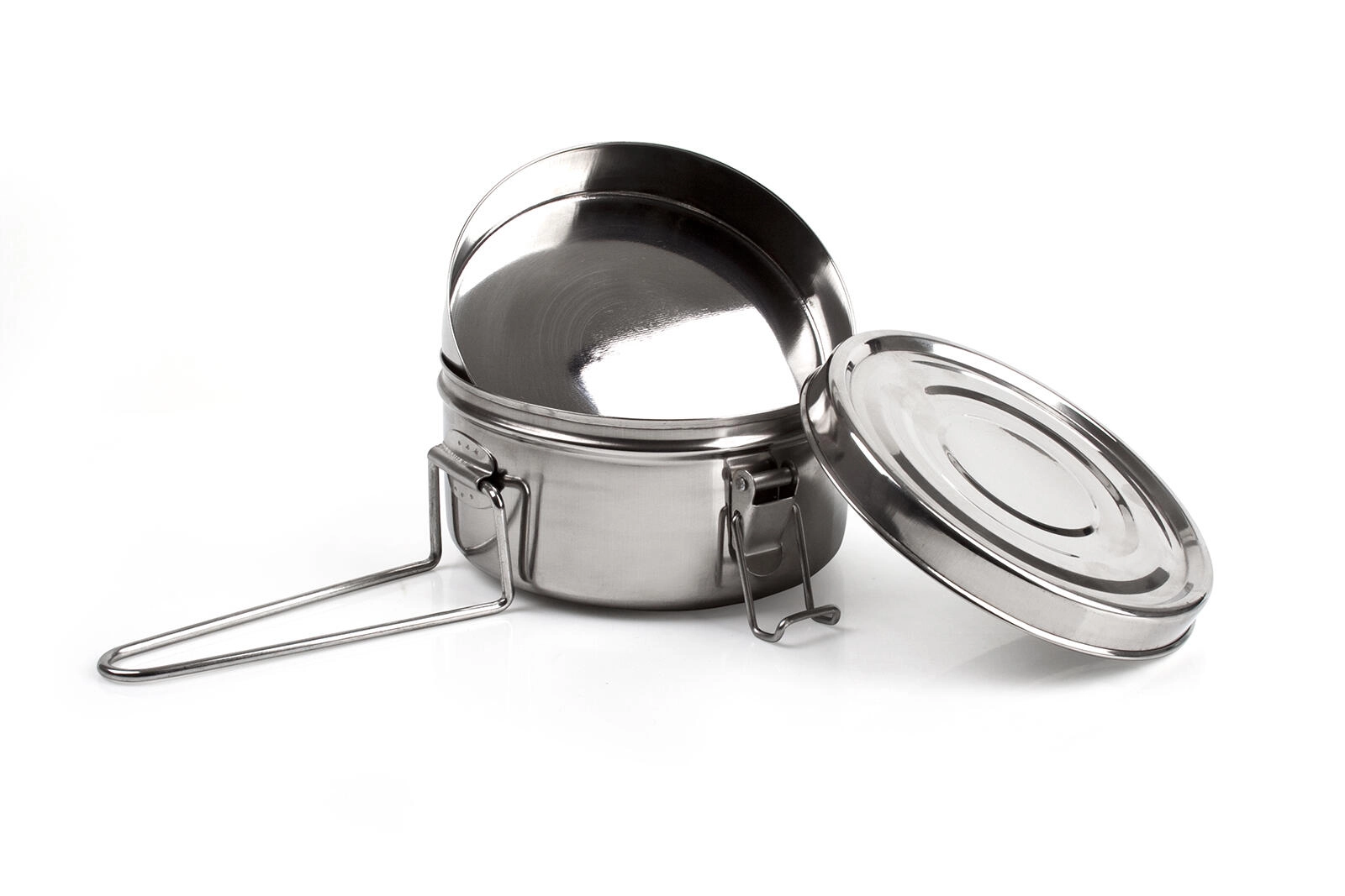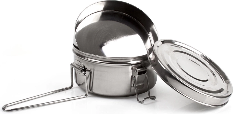 Praktisk kempingsæt til madlavning og servering i naturen. Denne 3-delte rustfri stål gryde 14 cm med sammenklappeligt håndtag tilbyder holdbarhed, lav vægt og nem vedligeholdelse. Ideel til vandreture, camping og lejre.