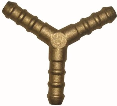 Praktisk slangefordeler til tilslutning af to lavtryksslanger efter regulatoren. Ideel til opdeling af gasledning med fokus på pålidelig tætning ved hjælp af klemmer og nem montering.