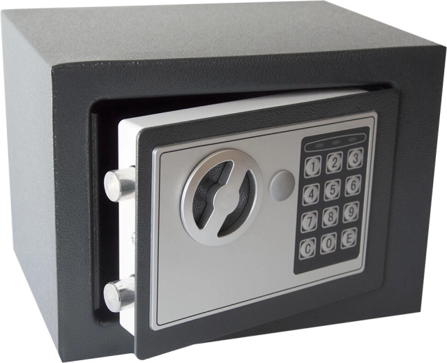 Praktisk digitalt pengeskab med stålkonstruktion er ideelt til opbevaring af dokumenter, smykker, kontanter og andre værdigenstande. De kompakte mål 230 × 170 × 170 mm muliggør diskret placering i skab, skuffe eller på hylde, samt fast forankring for øget sikkerhed.