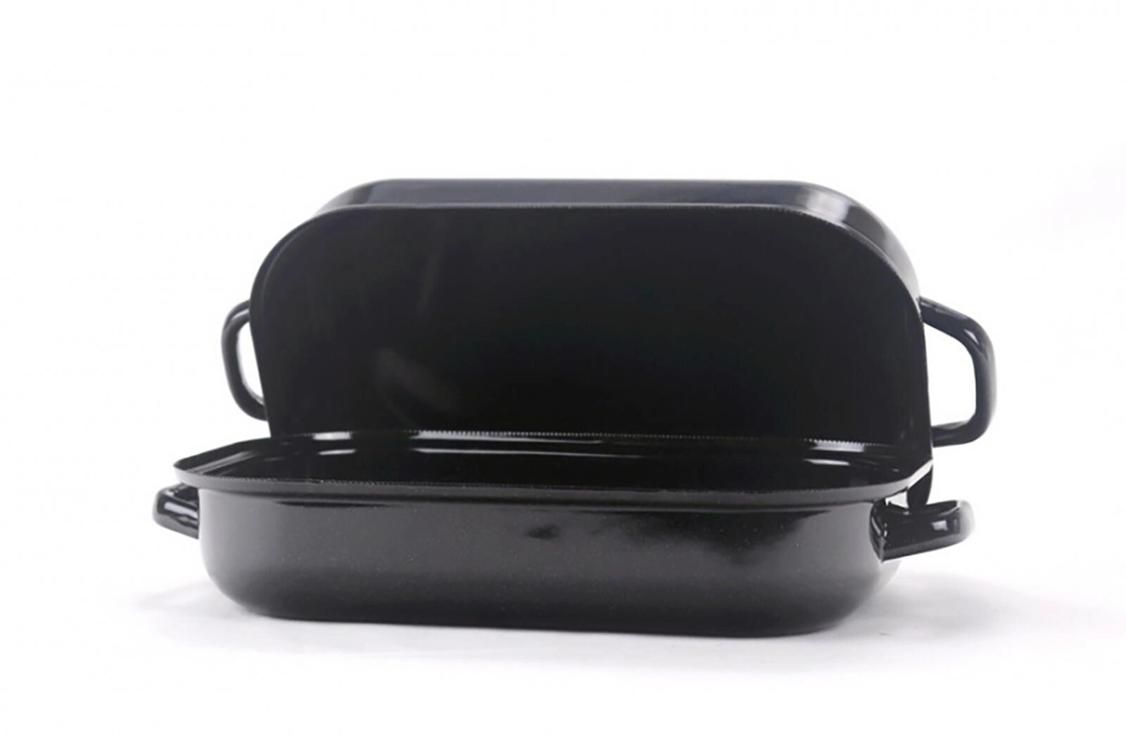 Denne dobbelt-sidede emaljerede bradepande af stålplade med praktisk låg er ideel til stegning af kød, grøntsager og gratinretter. De indvendige mål 30 × 17 cm giver rigelig plads til madlavning i hverdagen, mens den glatte emalje gør rengøringen nem og forhindrer ophobning af snavs.