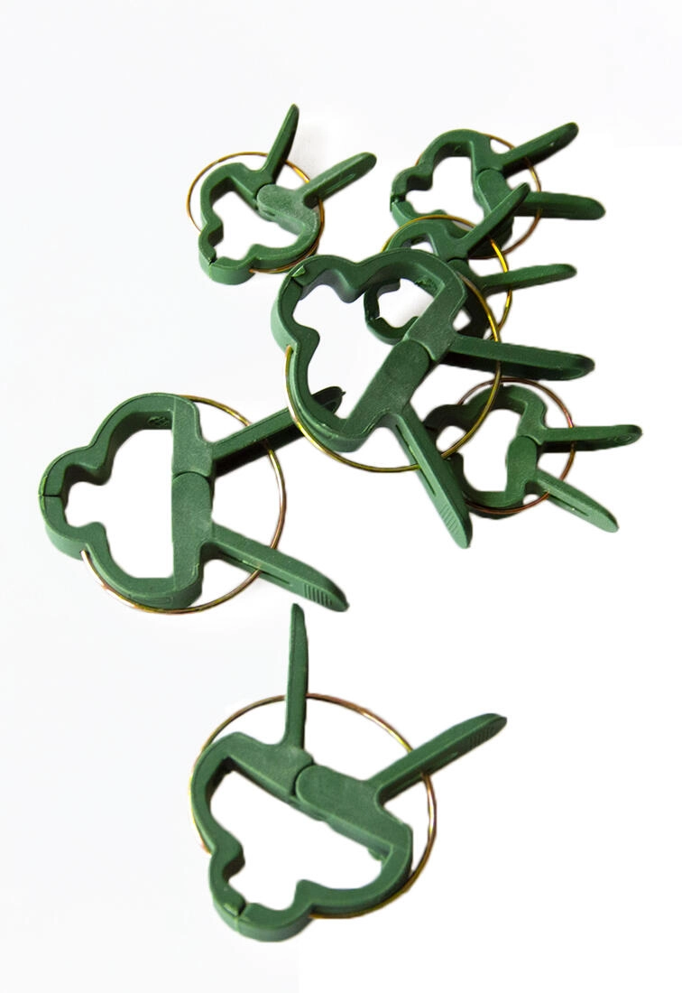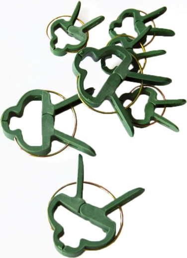 Gør havearbejdet lettere med universelle klemmer til opbinding af planter. To størrelser i én pakke gør det muligt sikkert og skånsomt at fastgøre både tynde og kraftigere stængler til pinde, gitre eller snore. Udført i plast, som er let, fleksibel og holdbar, så planterne ikke beskadiges, og klemmerne holder hele sæsonen.