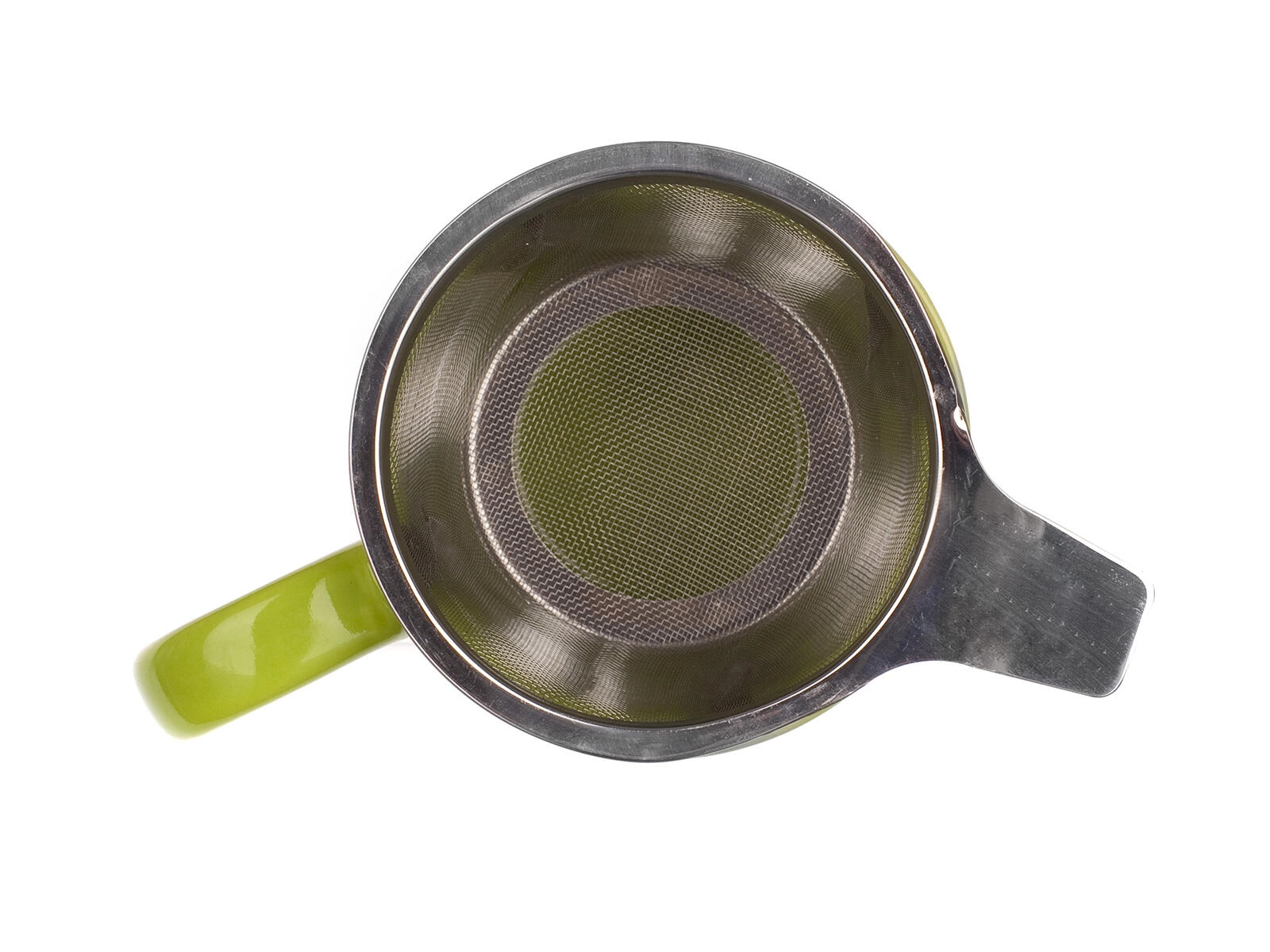 Det keramiske låg hjælper med at holde teen varm længere og fungerer som en praktisk skål til at lægge sien på efter brygning.