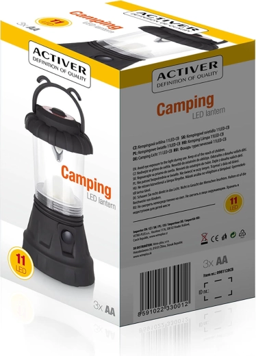 Kompakt og let camping-LED-lanterne med 11 dioder til pålidelig 360° belysning på farten, ved camping og i haven. Byder på høj lysstyrke, lavt energiforbrug og et praktisk håndtag til at bære eller hænge op. Strømforsynes af 3× AA-batterier (medfølger ikke).