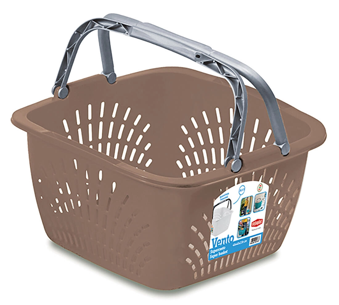 Den praktiske og robuste indkøbskurv VENTO gør hverdagsindkøb og transport derhjemme lettere. Den tilbyder 2 sammenklappelige håndtag for komfortabel bæring, volumen 18,5 l og bæreevne op til 15 kg. Den lette plastkrop med ventilationsåbninger sikrer holdbarhed, nem vedligeholdelse og åndbarhed for indholdet. Fås i et mix af farver, så du kan matche din stil.
