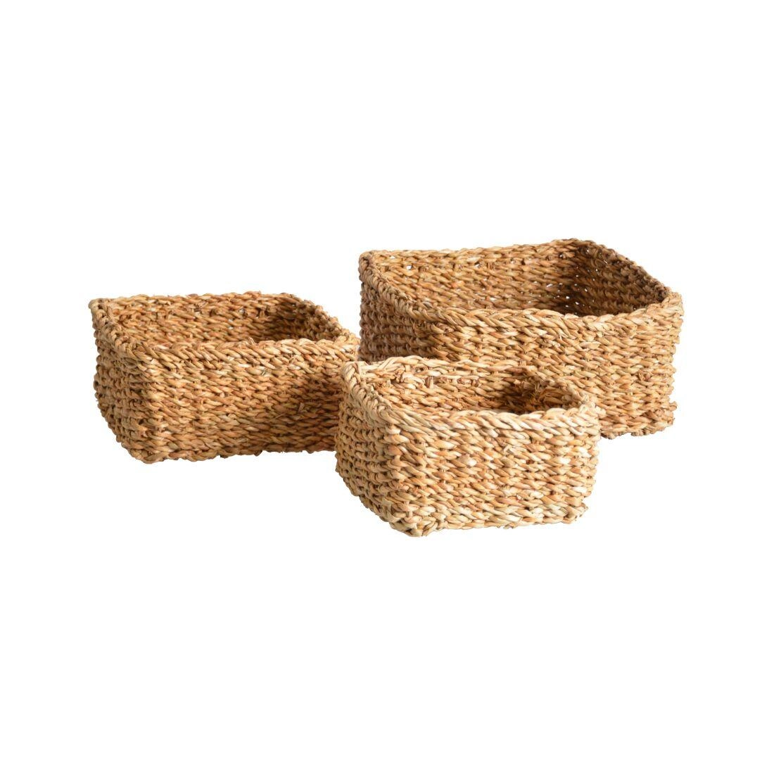 Denne firkantede lave kurv af søgræs er et fremragende valg for alle, der søger en kombination af naturligt udtryk og funktionalitet. Den er håndflettet af rent naturmateriale, som er skånsomt for miljøet og samtidig virker elegant i enhver indretning.