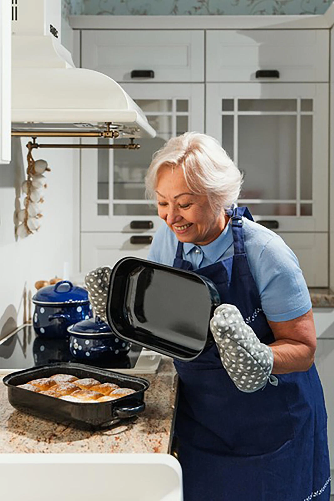 Den sikre sammensætning frigiver ingen kemiske stoffer, hæmmer bakterievækst og er velegnet til allergikere. Du kan bruge bradepanden i alle typer ovne (undtagen mikrobølgeovn), på induktion og andre komfurer og efterfølgende nemt vaske den i opvaskemaskine.