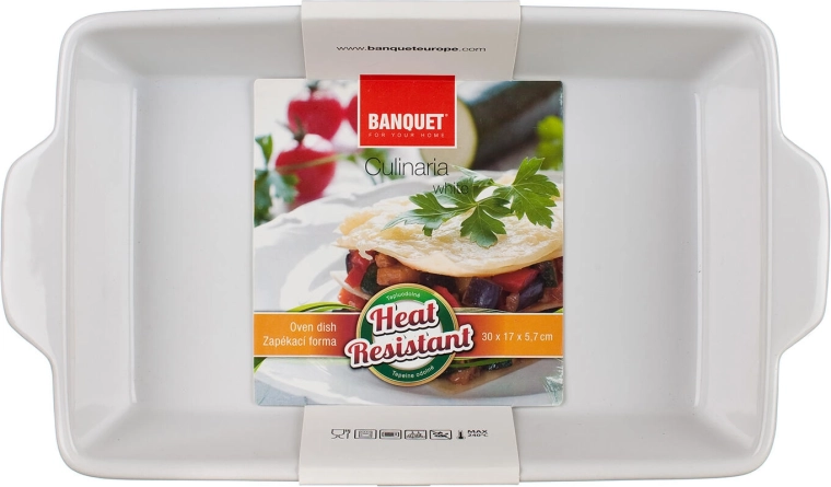 Målene 30 × 17 × 5,7 cm giver ideel kapacitet til familieportioner. Den blanke overflade er glat og let at rengøre, egnet til opvaskemaskine.