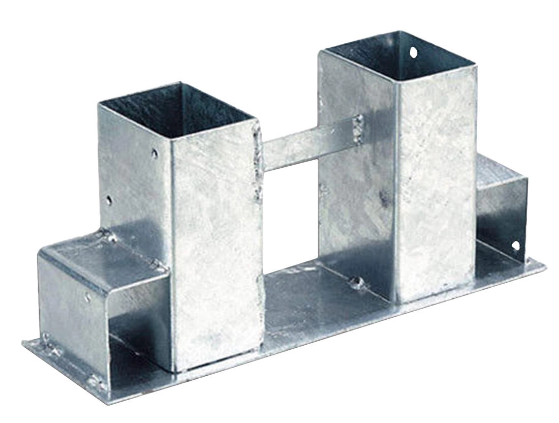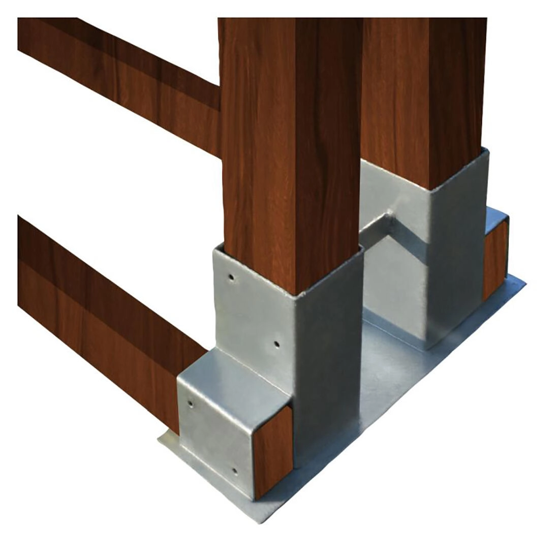Monteringen er hurtig og fleksibel – før blot træstolperne ind i hullerne og vælg længden efter behov. Træforbindere og sidestykker er ikke inkluderet (illustrativt). Til en komplet ramme skal der bruges mindst to holdere.
