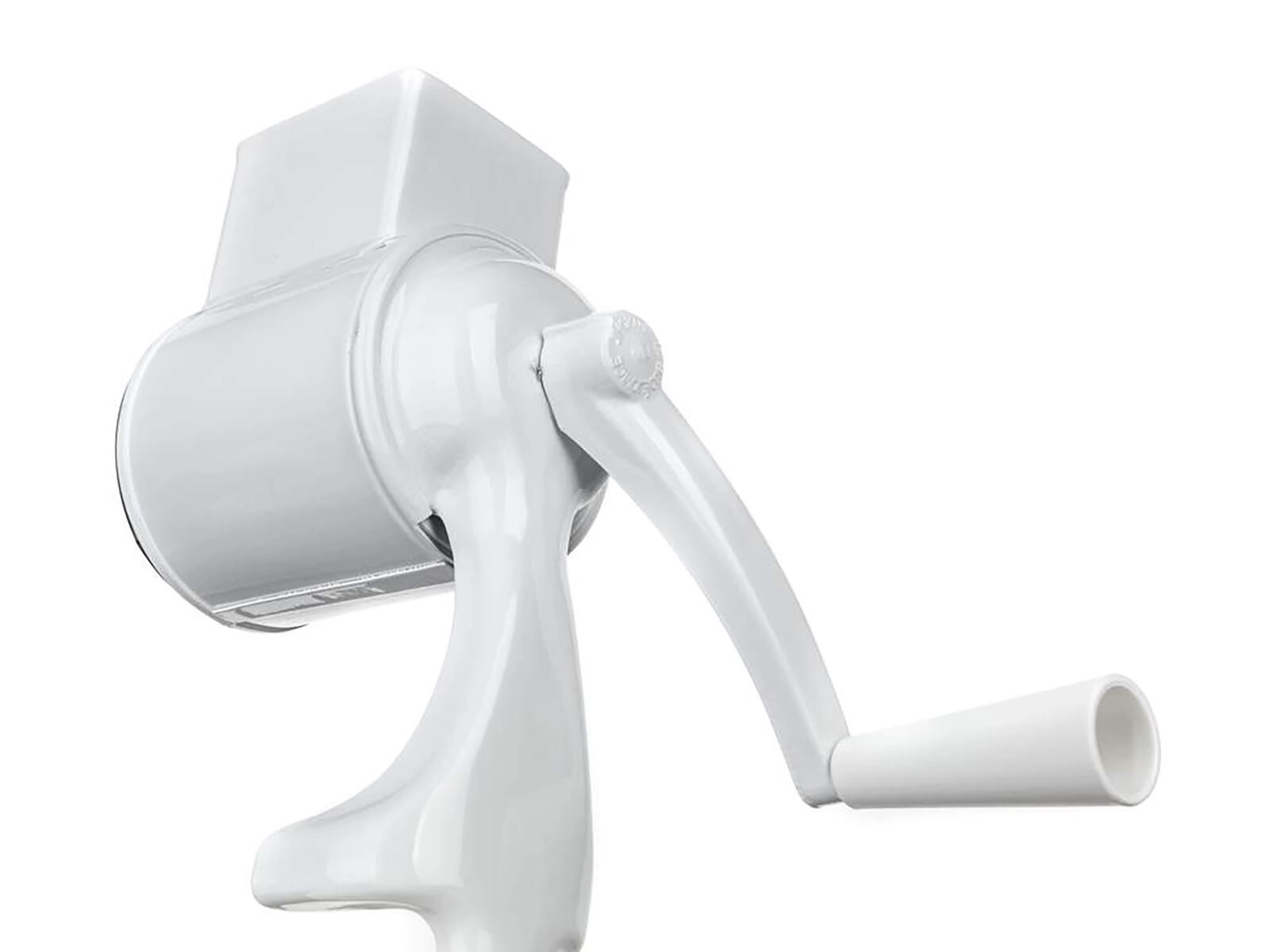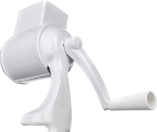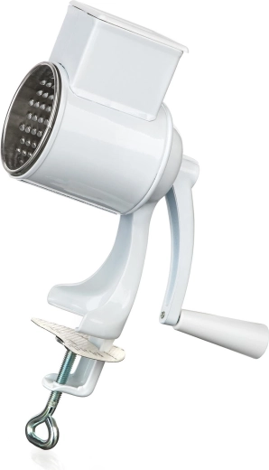 Den skruemonterede bordklemme holder raspen sikkert på plads, så du kan fokusere på jævn drejning af håndtaget og ensartede resultater uden at den glider. Det elegante hvide design passer både i moderne og traditionelle køkkener og fylder minimalt.