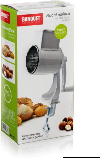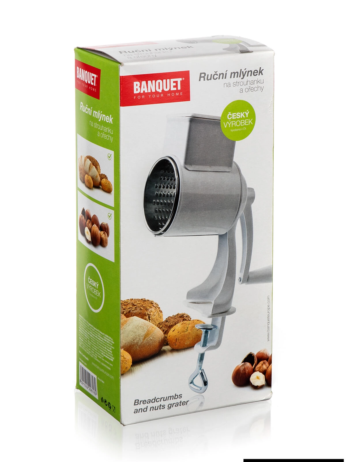 Den manuelle raspemaskine BANQUET er ideel til daglig brug – fra fin rasp af brød til hurtig rivning af hårde oste og nødder. Metalkrop med holdbar overfladebehandling og fortinnet tromle sikrer lang levetid og nem vedligeholdelse.