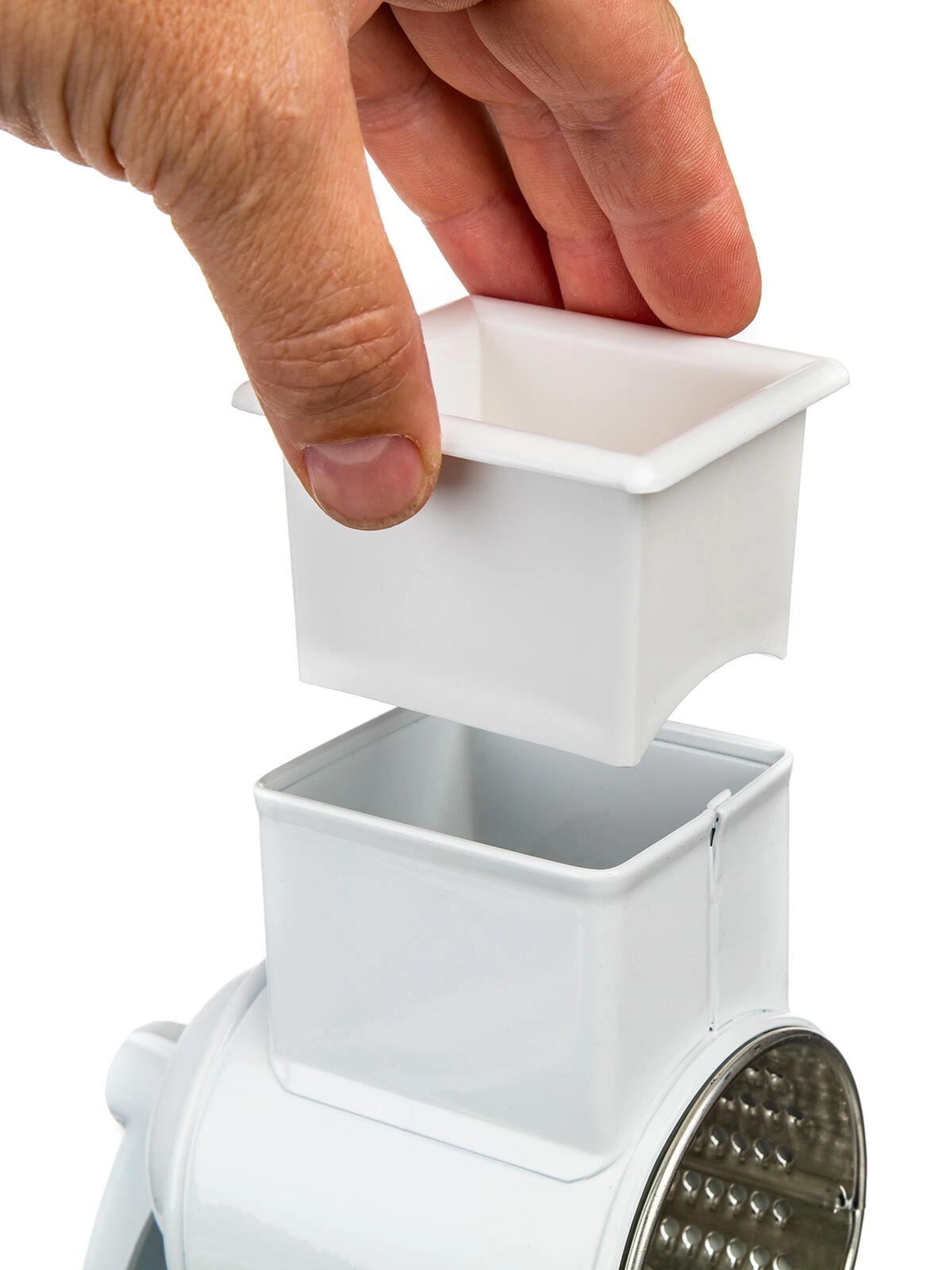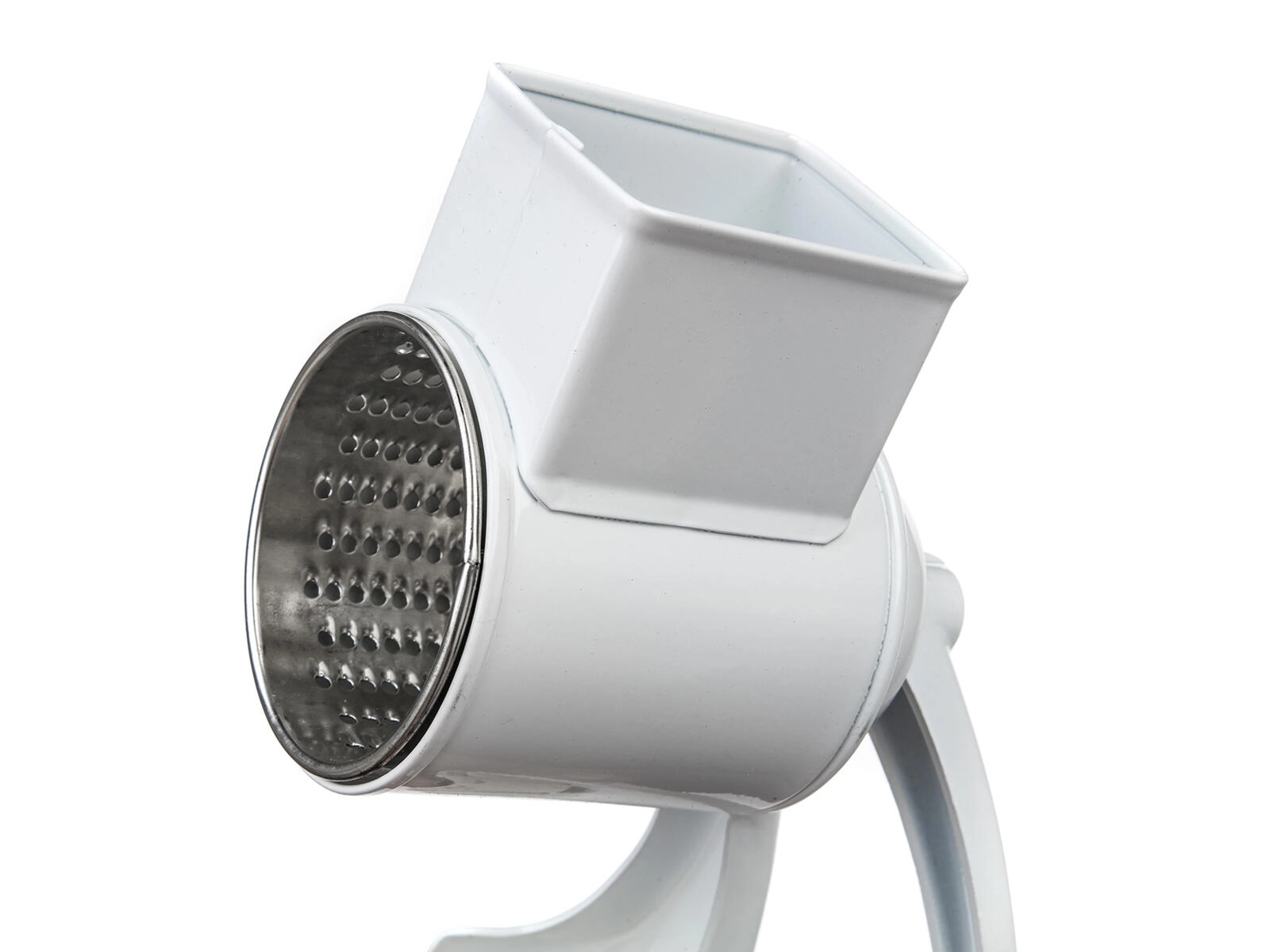 En kvalitets tromle af fortinnet plade med en diameter på 7,5 cm sikrer ensartet rivning og lang levetid, selv ved hyppig brug.