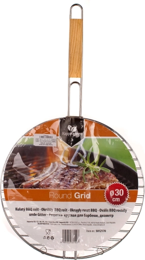 Praktisk rund grillrist med en diameter på 30 cm i forkromet stål med et behageligt træhåndtag for nem vending. Ideel til tilberedning af saftigt kød, grøntsager eller fisk på grillen. Holdbar konstruktion, nem vedligeholdelse og sikker håndtering takket være det isolerede håndtag. Holdbar forkromet overflade, behageligt træhåndtag og kompakt diameter på 30 cm til alsidig brug på de fleste grille.
