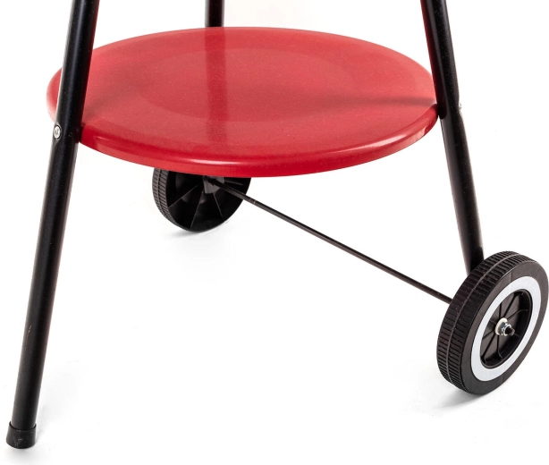 Takket være plastikhjulene og det forreste håndtag kan du let flytte grillen i haven eller ved sommerhuset. Den nederste opbevaringshylde giver plads til kul, redskaber eller krydderier, så du har alt lige ved hånden.