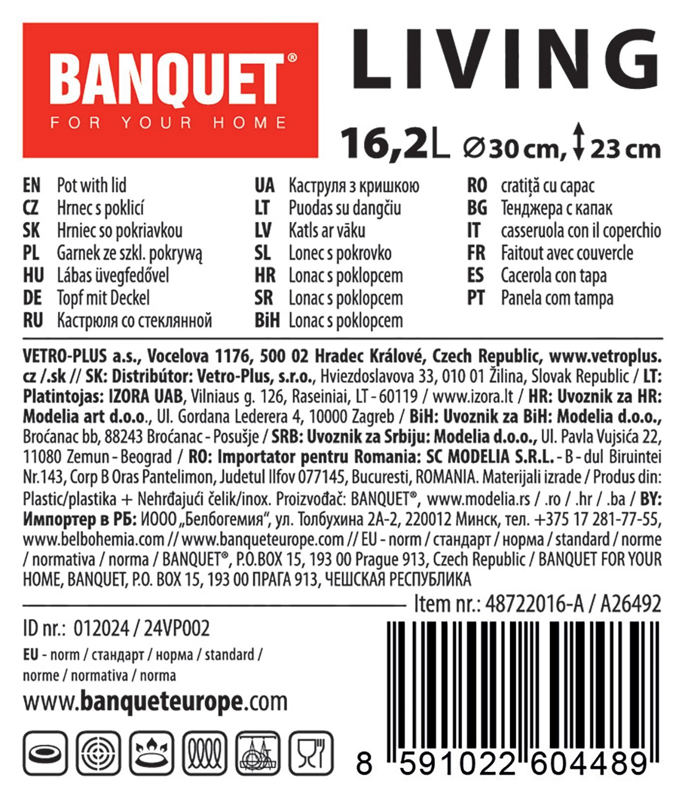 Stor kapacitets rustfri gryde LIVING med volumen 16,2 l og diameter 30 cm er ideel til at koge supper, fond og pasta. Den har kvalitetsudførelse i rustfrit stål, glaslåg med rustfri knop og solide håndtag. Den elegante blanke overflade suppleres af tre matte striber, og gryden er egnet til alle typer kogeplader, inklusive induktion.