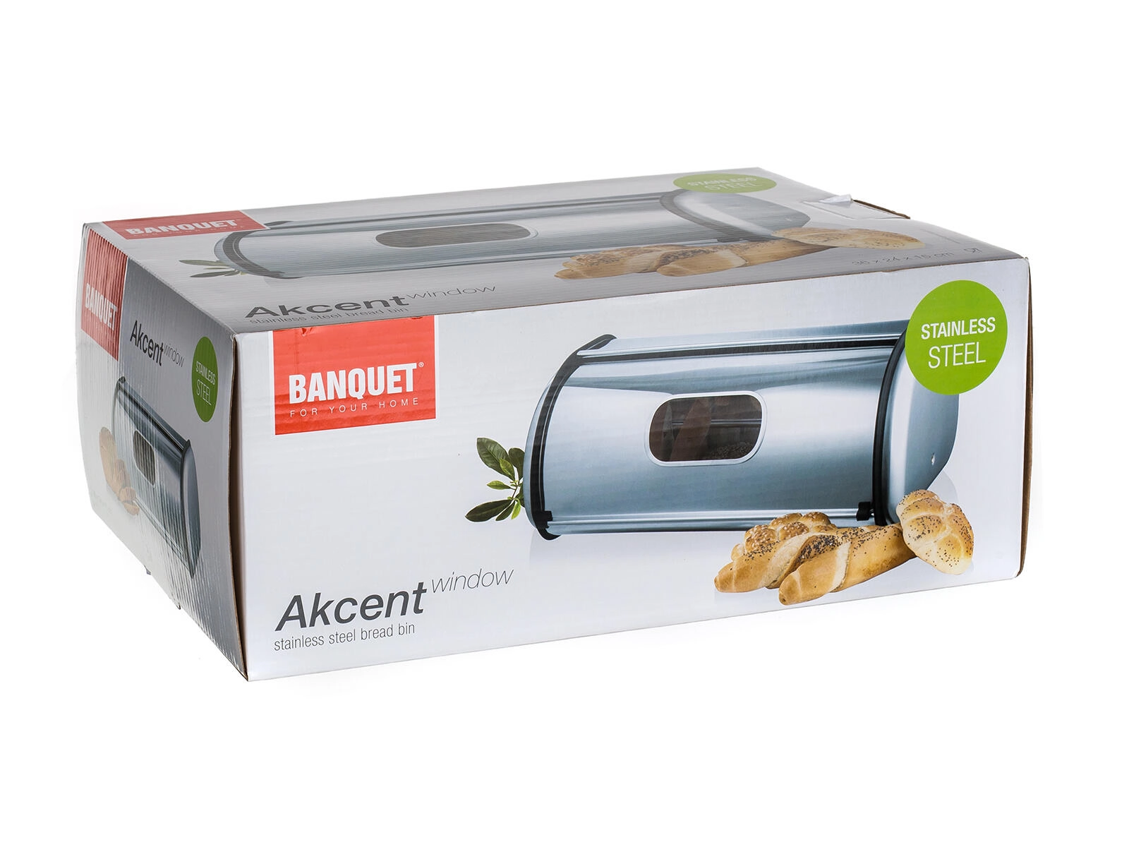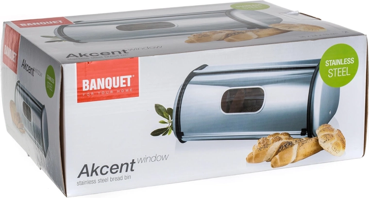 Den rustfri brødkasse AKCENT er en praktisk hjælper til daglig opbevaring af brød, rundstykker og sødt bagværk. Takket være kvalitetsforarbejdning i rustfrit stål type 201 og en blank overfladefinish bliver den et stilfuldt tilbehør i dit køkken, som er let at vedligeholde.